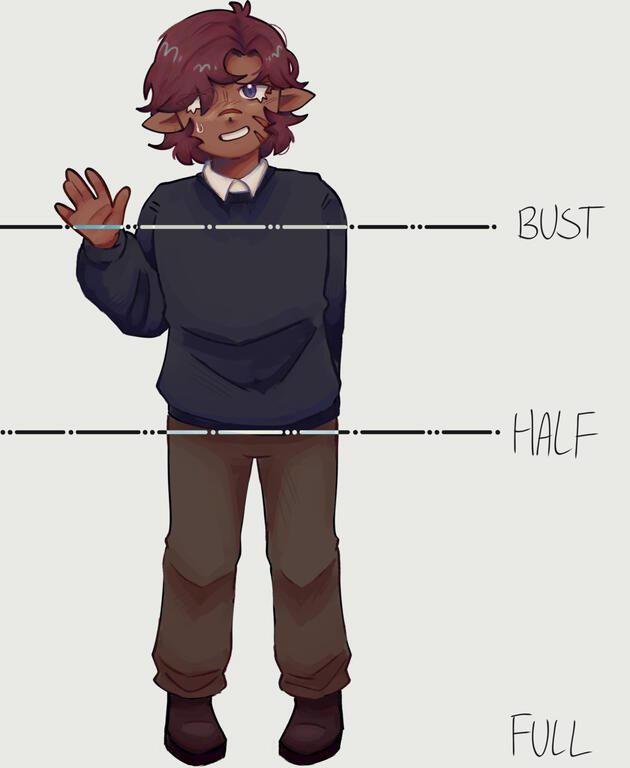 | -fanart -lineless (just ask!) -humans -humanoids -furry | -hate art -nsfw -heavy gore -mecha -anything i'm uncomfortable with |